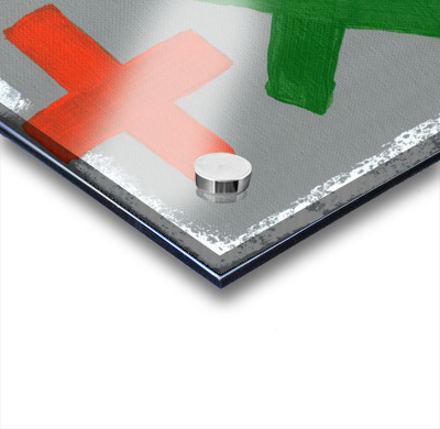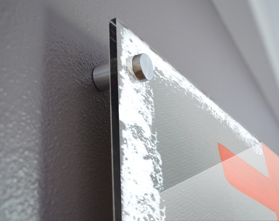 Impression sur acrylique avec entretoises ( cylindres métalliques )